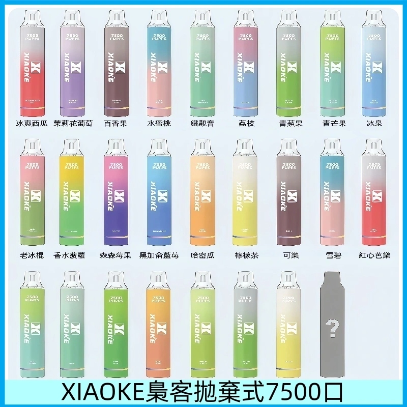 XIAOKE 梟客7500口拋棄式電子煙,以高性價比與穩定性能成為市場焦點。內建 8ml 煙油與 650mAh 可充電電池,支援 Type-C 快速補電,可提供約 7500 口飽滿霧化體驗,真正實現「用到盡」的便利。提供 25 種多元風味,無論日常通勤、中重度使用或口味探索者,都能享受順滑純粹的霧化樂趣。